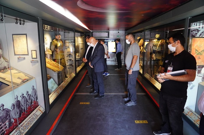 Çanakkale Savaşları Mobil Müzesi, Bayburt’ta kapılarını ziyaretçilere açtı.Koronavirüs tedbirlerine uyularak ziyaret edilebilecek müze, 15 - 16 Eylül 2020 tarihlerinde saat 12:00 ile 21:00 arasında Bayburtluları ağırlayacak.Bu önlemler kapsamında müzeye aynı anda en fazla 10 kişi kabul edilecek.Belediye Başkanı Hükmü Pekmezci beraberinde Başkan Yardımcısı Süreyya Türkmenli ile birlikte Türk tarihine altın harflerle nakşedilen Çanakkale Zaferi'nin gelecek nesillere en iyi şekilde anlatılabilmesi adına şehir şehir gezen ve bu kapsamda Bayburt'a gelen Çanakkale Mobil Müzesi'ni ziyaret etti. Ziyaretçilerini adeta Çanakkale Savaşı'nda cephedeymiş gibi hissettiren ve o ruhu yakalayabilmelerini, o günlere bir nebze olsun tanıklık etmelerini sağlamak amacıyla Bayburt'ta olan müzeyi ilgiyle gezen Başkan Pekmezci yetkililerden bilgi alarak kendilerini Bayburt'ta ağırlamaktan mutluluk duyduklarını belirtti.