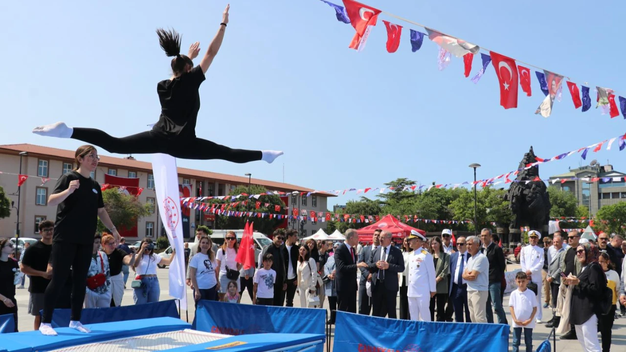 Çağlar Kaynak Basketbol Sahası’nda devam eden kutlama programı, Gençlik Merkezi gönüllülerinden Zeynep Sıla Benli ve Ragıp Mamur’un gençlik adına yaptığı konuşmalarla sürdü. Konuşmaların ardından gençler tarafından hazırlanan halk oyunları, karate, aerobik ve jimnastik gösterileri ilgiyle izlendi.