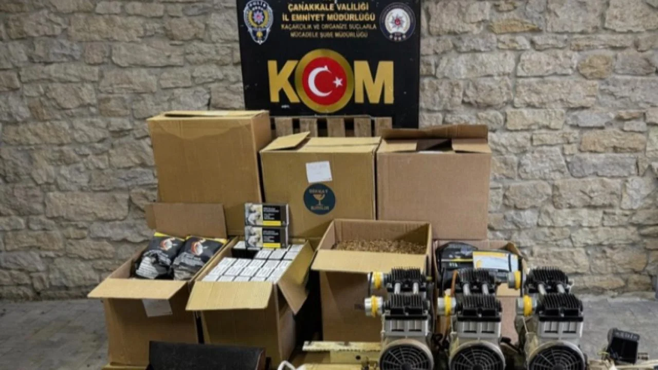 Çanakkale genelinde kaçakçılık faaliyetlerinin deşifre edilmesine yönelik yapılan çalışmalarda ise, 2 şüpheli şahsa ait 1 ikamet ve 1 işyerinde yapılan aramalarda; 1 adet elektronik sigara sarma makinesi, 1 adet kompresör, 3 adet kompresör motoru, 198.200 adet boş makaron, 14.700 adet doldurulmuş makaron,114 paket tütün,12 kilo açık kıyılmış tütün ele geçirildi.