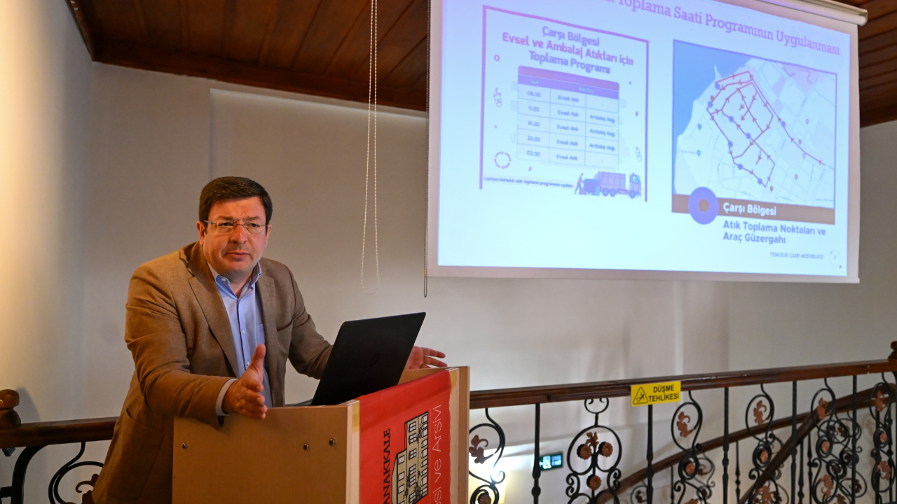 Toplantıda bir konuşma yapan Belediye Başkanı Muharrem Erkek ise, Çanakkale Belediyesi tarafından temizlik konusunda çok ciddi çalışmaların yürütüldüğünü belirterek, “Biliyorsunuz çöp deponi alanımız var Musaköy'de. Çöplerden metan gazı ve çöp sızıntı suyu çıkar. Biz, çöp sızıntı suyunu dahi arıtarak doğaya bırakan Türkiye'deki tam lisanslı 5 belediyeden biriyiz. Bu konuda o kadar hassasız. Atıklara ilişkin bilinci de tüm kente yaymalıyız” dedi. Başkan Erkek, kent genelinde temizliğe ilişkin pek çok çalışma gerçekleştirildiğini, Çarşı Bölgesindeki saatli atık toplamaya ilişkin de özellikle esnaflardan ve hemşehrilerden duyarlılık beklediğinin altını çizdi. Başkan Erkek, atıkların çevre ve görüntü kirliliğine neden olmaması açısından, toplama saatlerinden en fazla 5 veya 10 dakika önce dışarı çıkarılmasının önemli olduğunu söyledi.
