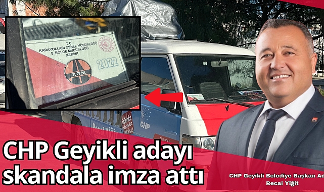 CHP logolarıyla süslenen, CHP Geyikli Belediye Başkan Adayı Recai Yiğit ve meclis üyelerinin büyük fotoğrafları ile bir reklam aracı haline getirilen seçim aracında “TÜRKİYE CUMHURİYETİ ULAŞTIRMA VE ALTYAPI BAKANLIĞI LOGOLU, T.C. KARAYOLLARI GENEL MÜDÜRLÜĞÜ 5. BÖLGE MÜDÜRLÜĞÜ MERSİN” kartını görenler gözlerine inanamadı.