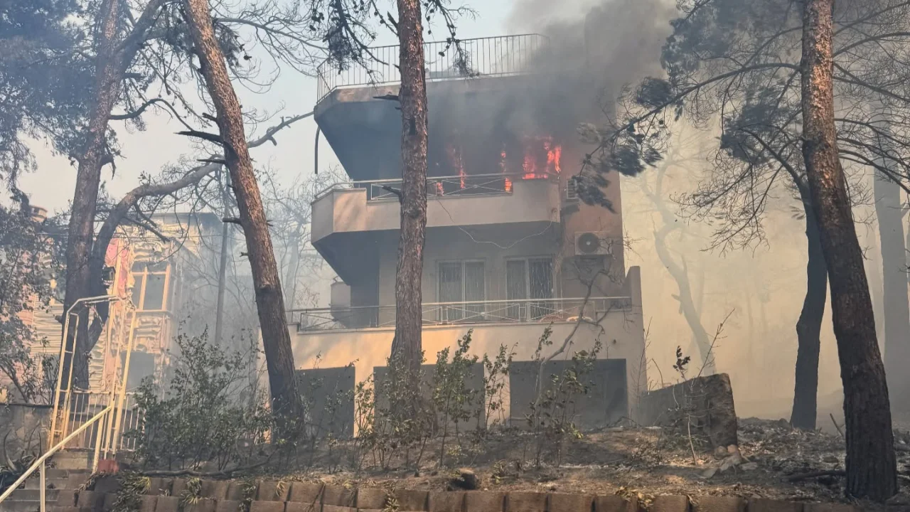 Çanakkale Çınarlı Dardanos bölgesindeki yangın rüzgarın etkisiyle büyüyor. Bölgede bazı evler yangından zarar görürken, Güzelyalı’daki vatandaşların feribotla tahliye edileceği bildirildi.