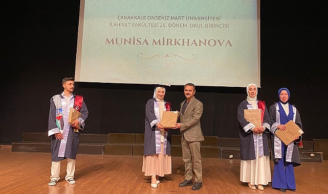 Çanakkale Onsekiz Mart Üniversitesi İlahiyat Fakültesi öğrencileri, düzenlenen törende mezuniyet coşkusu yaşadı.