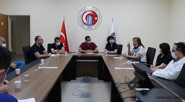 Ülkemizde yeni koronavirüs salgını nedeniyle Çanakkale’de Pandemi hastanesi ilan edilen ÇOMÜ Sağlık Uygulama ve Araştırma Hastanesi normalleşme sürecinde hastalarına daha iyi hizmet verebilmek için Corona Virüs Komitesi toplantısı gerçekleştirildi. Toplantıya Başhekim Prof. Dr. Okhan Akdur, Göğüs Hastalıkları Anabilim Dalı Başkanı Prof. Dr. Nihal Arzu Mirici, Mikrobiyoloji ve Klinik Mikrobiyoloji Anabilim Dalı Öğretim Üyesi Prof. Dr. Alper Akçalı, Ameliyathane Sorumlu Öğretim Üyesi Prof. Dr. Oğuz Güçlü, Enfeksiyon Hastalıkları ve Klinik Mikrobiyoloji Anabilim Dalı Öğretim Üyesi Doç. Dr. Alper Şener, Çocuk Sağlığı ve Hastalıkları Anabilim Dalı Başkanı Doç. Dr. Hakan Aylanç, Hastane Başmüdürü Serap Yontar, Başhemşire Nazmiye Sınmaz, Müdür Yardımcıları İbrahim Demir ve Levent Çiftçi katıldı.