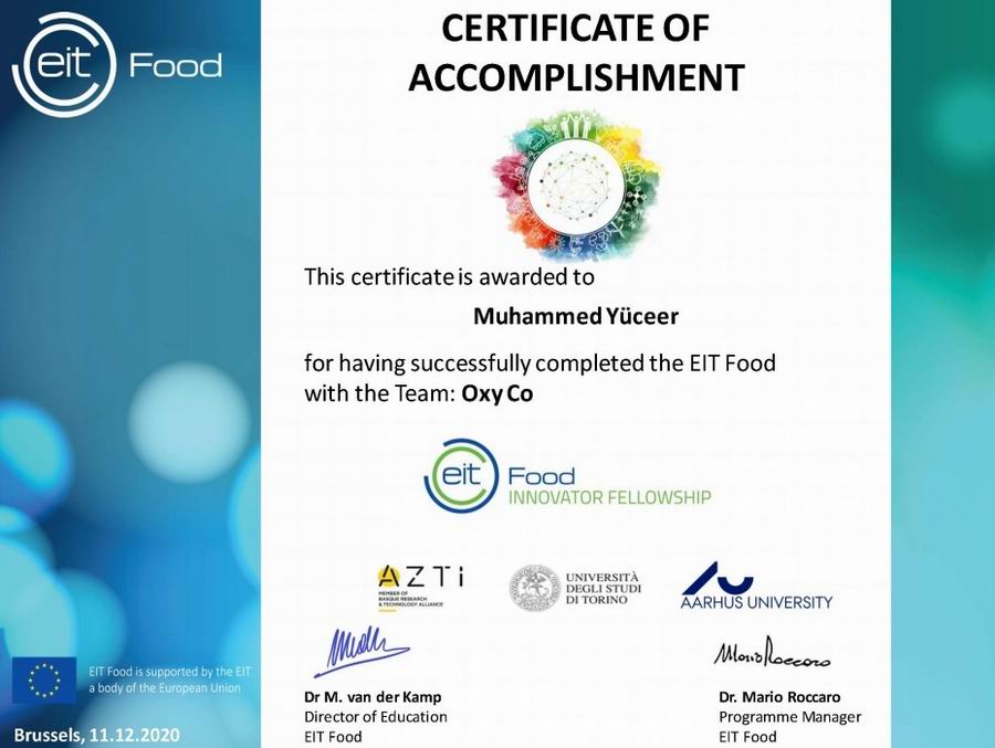 Üniversitemiz Çanakkale Teknik Bilimler Meslek Yüksek Okulu Gıda İşleme Bölümü Öğretim Üyesi Dr. Öğr. Üyesi. Muhammet Yüceer, Avrupa İnovasyon Teknolojileri Enstitüsü Gıda Birimi (EIT Food) Yenilikçi Burs Programı En İyi İş Fikri Ödülünü aldı.