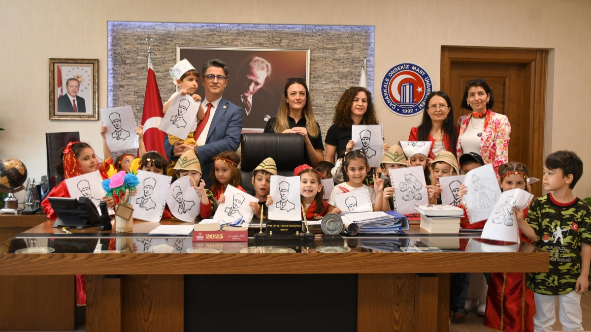 Rektör Prof. Dr. R. Cüneyt Erenoğlu, 23 Nisan Ulusal Egemenlik ve Çocuk Bayramı vesilesiyle ÇOMÜ Kreş’te eğitim alan çocukları makamında ağırladı. Rektör Prof. Dr. R. Cüneyt Erenoğlu, Rektör Yardımcıları Prof. Dr. Evren Karayel Gökkaya, Prof. Dr. H. Levent Dalyancı, Prof. Dr. Arda Aydın’dan makamını devralan çocuklar, taleplerini dile getirdiler.