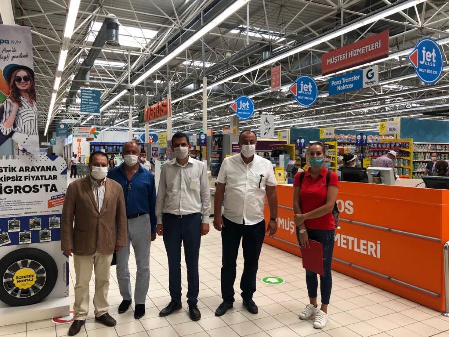 Kipa AVM ve AVM’’de bulunan iş yerlerini ziyaret eden Başkan S.Kaya Üzen ve beraberindeki heyet, esnaf ve vatandaşlarla sohbet ederek iş yerleri içerisindeki sosyal mesafe ve hijyen gibi konulara dikkat edilmesi gerektiği ile ilgili vurgu yaptılar. Esnafımız tarafından alınan tedbirlerin büyük bir titizlik ve hassasiyet içerisinde uygulandığından duyduğu memnuniyeti dile getiren İl pandemi kurulunda yer alan Ticaret Borsası Başkanı S.Kaya Üzen “Esnafımızın, getirilen kurallara uymaları, uygulanan tedbirlerin kendi sağlıkları için gerekli olduğunu ve bu tedbirlerin hayati önemde olduğunun farkında olarak hareket etmeleri çok önemli. Şehrimizdeki kalabalıklaşmalar büyük oranla alışveriş ortamlarında olmakta. İş yeri sahiplerimizin alacakları tedbir ve müşterilerine yapacakları uyarılar kolluk kuvvetleri ve yetkililerin denetimleri kadar etkili olacaktır.” dedi.