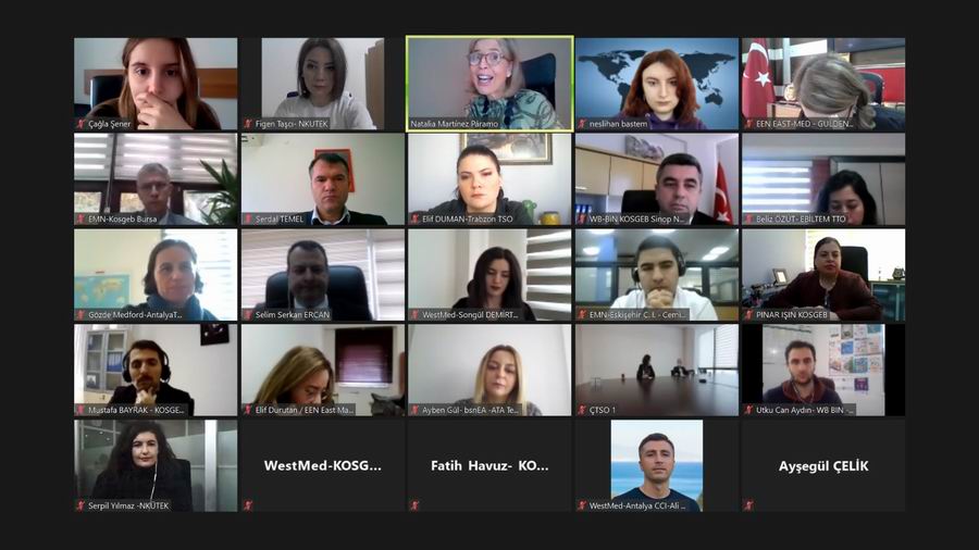 Türkiye ENN Ulusal toplantısının açılış konuşmasının ardından Türkiye’de faaliyet gösteren 11 Konsorsiyum temsilcisi tarafından COSME EEN programı kapsamında 2020 içinde hedeflenen faaliyetlerin gerçekleştirilme oranları hakkında sunumlar yapıldı. Edirne KOSGEB Müdürlüğünün koordinatör kuruluş olarak yer aldığı EEN WEST-MAR Konsorsiyumu adına sunumu ÇTSO Dış İlişkiler Uzmanı Mehtap Göynüer tarafından gerçekleştirildi.