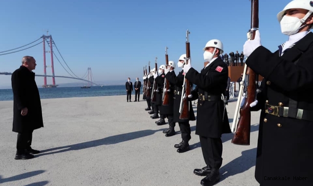 İstanbul Boğazı'nın ardından Çanakkale Boğazı da gerdanlığına kavuşuyor. Temeli 18 Mart 2017'de atılan 1915 Çanakkale Köprüsü'nün son tabliyesi, bugün Cumhurbaşkanı Erdoğan'ın katıldığı törenle yerleştirildi. 4 yılı aşkın sürede büyük oranda tamamlanan köprü, Çanakkale Deniz Zaferi'nin 107'nci yıl dönümü olan 18 Mart 2022'de hizmete açılacak. Köprünün açılmasıyla Çanakkale Boğazı'nın geçişi 6 dakika inecek. Son tabliyenin montajı için düzenlenen törene katılan Cumhurbaşkanı Erdoğan,"Yap İşlet Devret modeliyle inşa edilen bu köprü ile Türkiye yeni bir sıçramayı gerçekleştirmiş oluyor." ifadelerini kullandı.