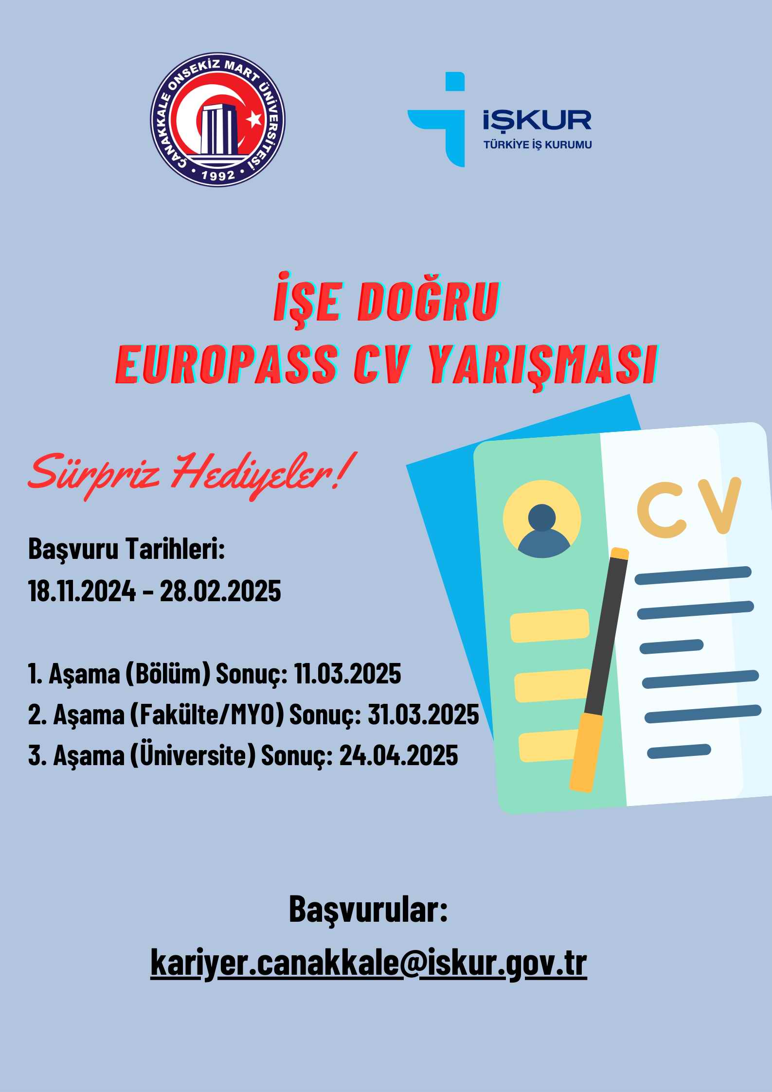 İŞKUR Çanakkale’den yapılan açıklamaya göre bu yılki yarışmanın başvurularının 18 Kasım 2024 ve 28 Şubat 2025 tarihleri arasında alınacak. Yarışmaya öğrenciler CV’lerini [email protected] adresine gönderebilecekler. Yarışmada dereceye giren öğrencileri sürpriz hediyeler beklerken sonuçlar 3 aşamada açıklanacak. Önce bölüm birincileri, sonra fakülte/meslek yüksekokulu birincileri ve en son da üniversite birincisi duyurulacak.