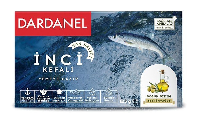 Dardanel, yenilikçi ürün gamını Van Gölüyle özdeşmiş olan İnci Kefali üretimi ile genişletiyor. Dünyada sadece Van Gölü Havzası’nda yaşayan endemik bir tür olan İnci Kefali (Van Balığı), 125 gramlık sağlıklı ambalajlarda, soğuk sıkım zeytinyağlı olarak sunuluyor.