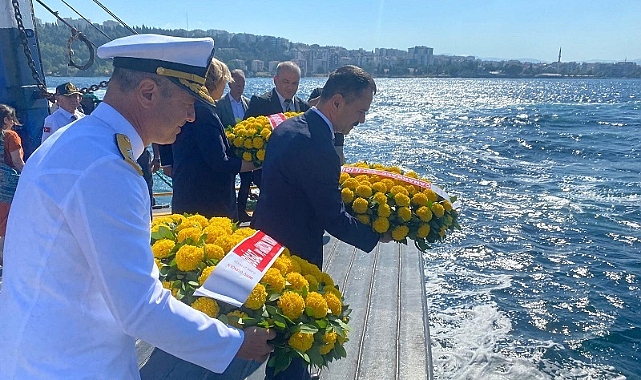 Törende; Vali İlhami Aktaş, Boğaz ve Garnizon Komutanı Tuğamiral Mustafa Biçen ve Çanakkale Belediye Başkan V. Nurcan Bingöl, Deniz Şehitleri anısına Çanakkale Boğazı’na çelenk bırakarak Aziz Şehitlerimiz için dua edip Şehitlerimizi rahmet, minnet ve şükranla yad ettiler.