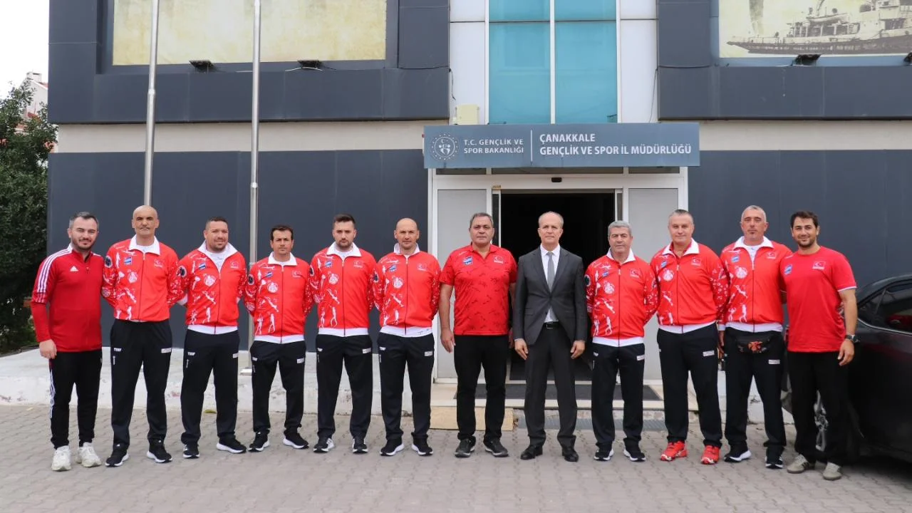 Milli sporcular, Çanakkale Gençlik ve Spor İl Müdürü Ömer Kalkan’ı ziyaret etti. İl Müdürü Ömer Kalkan; “Milli Takımımız, ülkemizi en iyi şekilde temsil etmek için yoğun bir kamp dönemi geçirdi. Sporcularımıza ve teknik ekibimize Brezilya’da düzenlenecek Dünya Şampiyonası’nda üstün başarılar diliyoruz.”