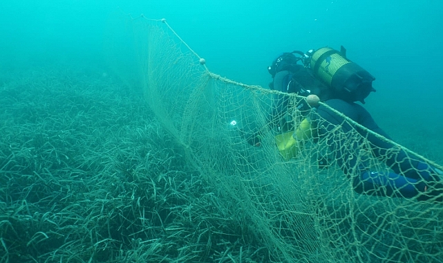 ÇOMÜ Deniz Bilimleri ve Teknolojisi Fakültesi akademik ve gemi personeli ile Balıkesir Büyükşehir Belediyesi Kırsal Hizmetler Daire Başkanlığı dalgıçlarından oluşan 15 kişilik "hayalet ağ avcıları" ekibi, Edremit Körfezi’nde Gömeç açıklarında yaklaşık 200 metre terkedilmiş uzatma ağı çıkardı.