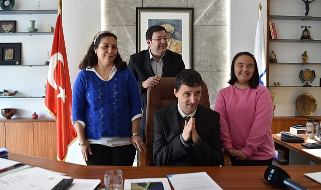Ziyarette ayrıca, 3 Aralık Dünya Engelliler Günü dolayısıyla Temsili Koltuk Devretme Töreni de düzenlendi. Başkan Erkek tören kapsamında koltuğunu Umut Sağır'a devrederken Başkan Sağır'ın yardımcıları da Nesrin Toplu ve Sümeyye Turan oldu. Umut Sağır, down kafe talebinde bulunurken konuya ilişkin açıklamalarda bulunan Başkan Erkek ise, “Önümüzdeki süreçte engelli derneklerimizle, sivil toplum kuruluşlarımızla, paydaşlarımızla engelsiz kent projemiz için önemli projelere imza atacağız. Down kafeyi de mutlaka yapacağız; zaten Kent Park projemiz içinde yer alıyor” diye konuştu.