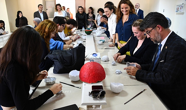 Atölye Eğitmeni Ebru Baç, kâğıttan hamurun nasıl yapıldığını anlattı ve “Papier Mache/Kağıt Hamuru” tekniğinin bir ileriye dönüşüm örneği olduğunu dile getirdi. Baç, kullanılmış kâğıtların yeniden değerlendirilerek rengârenk kâselere, aydınlatmalara, dekoratif tabaklara, tek tek elde üretilen birer objeye ve sanat eserine dönüştürülebileceğinin altını çizdi.