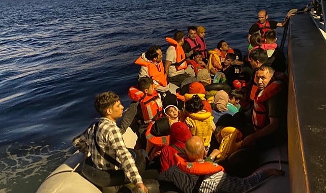 Ezine ilçesi açıklarında lastik bot içerisinde 39 kaçak göçmen yakalandı.