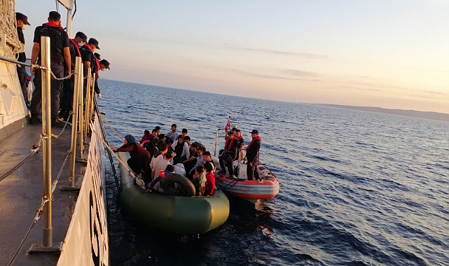 Ezine ilçesi açıklarında 33 kaçak göçmen ve 3 göçmen kaçakçısı yakalandı.