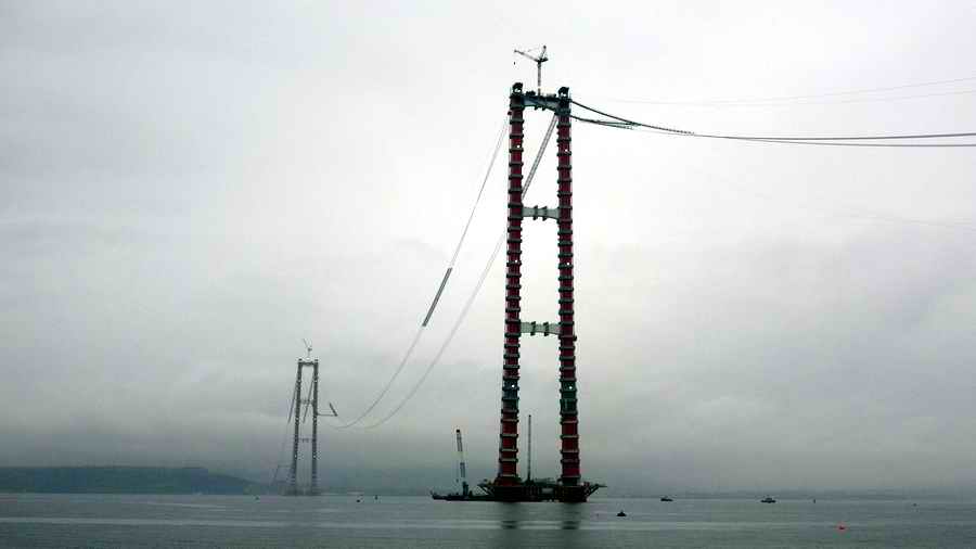 Dünyanın en büyük orta açıklıklı asma köprüsü olan 1915 Çanakkale Köprüsü’nde çalışmalar tüm hızıyla sürüyor.