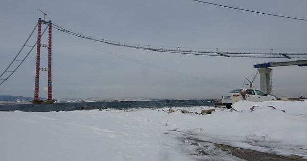 1915 Çanakkale köprüsünün büyüleyen kar manzarası