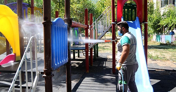 Biga Belediyesi, Parkları ve Kapalı Pazar Yerlerini dezenfekte ediyor..