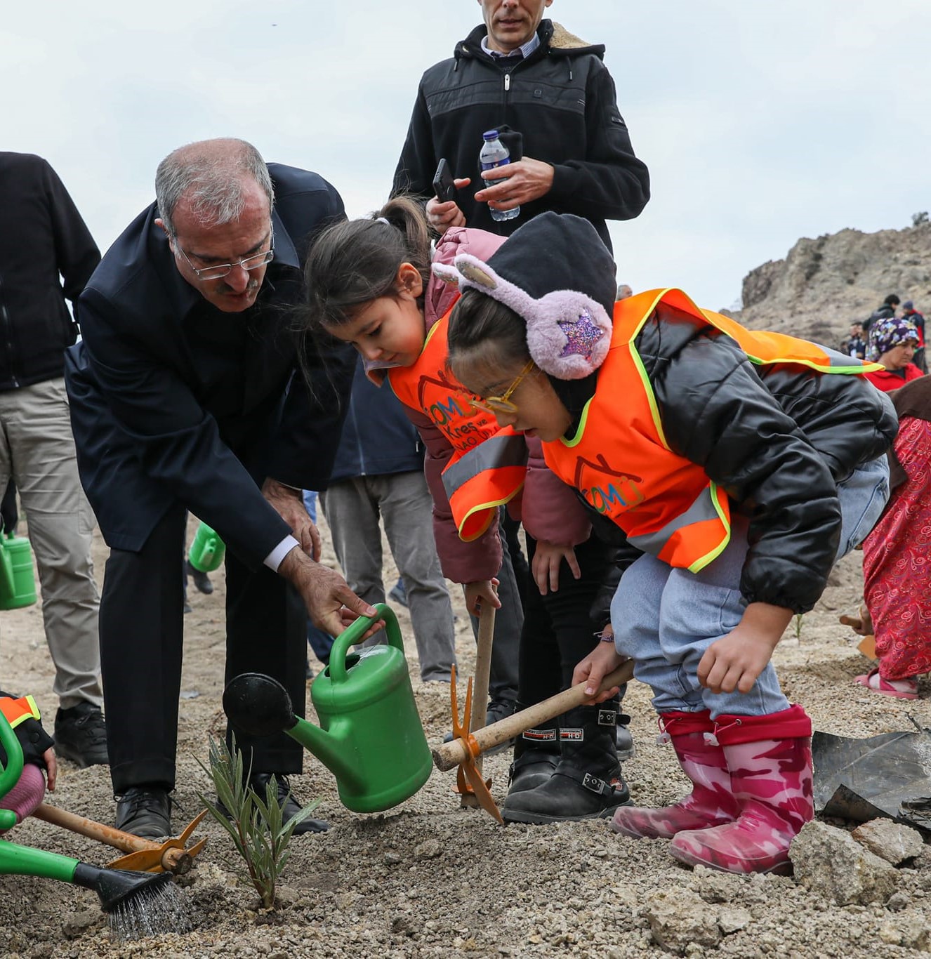Etkinlik kapsamında, protokol üyeleri ve öğrenciler tarafından Kayadere köyünde fidanlar toprakla buluşturuldu ve fidanlara can suyu verildi.