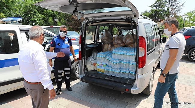 Gelibolu Belediyesi, yangın sahasında soğutma çalışmaları yapan ekibe kumanya desteği sağladı.