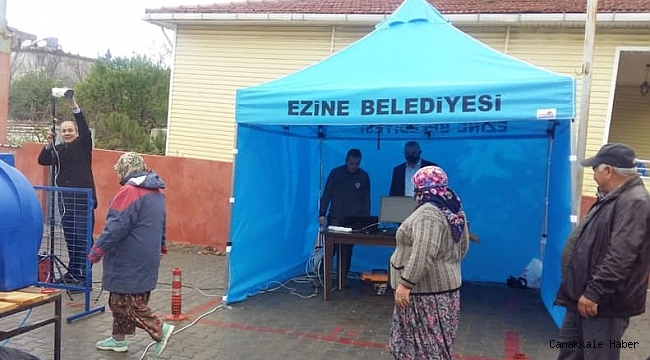 Geyikli pazar yerine Ezine Belediyesi’nin termal kamera ve dezenfeksiyon tüneli kuruldu.