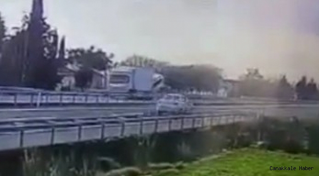 Tekirdağ'da hafif ticari aracın tıra çarpması sonucu meydana gelen kazada 1 kişi ağır yaralandı. Aracın tıra ok gibi saplanması ise anbean kameraya yansıdı.Kaza, Tekirdağ-İstanbul...