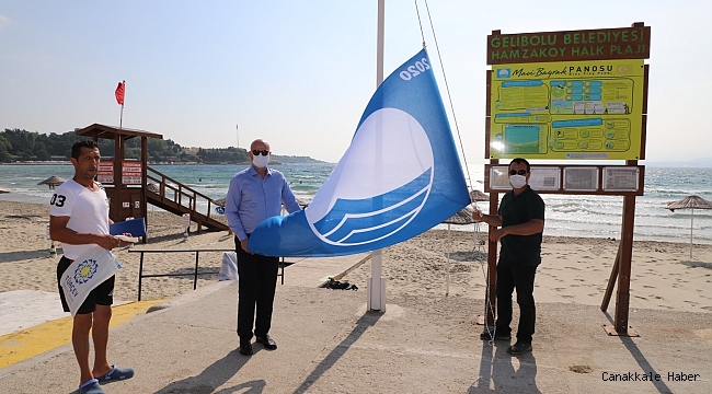 Gelibolu ilçesindeki Hamzakoy Halk Plajı’nda mavi bayrak dalgalanıyor.
