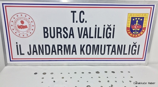 Edinilen bilgiye göre A.T. (36) Çatalsöğüt Mahallesi'ndeki ikametinde izinsiz kazı sonucu çıkartmış olduğu tarihi eser niteliğindeki malzemeleri satmak istedi. Gelen istihbaratı değerlendiren Bursa İl Jandarma Komutanlığı Kaçakçılık ve Organize Suçlarla Mücadele Şube Müdürlüğü ve Harmancık İlçe Jandarma Komutanlığına bağlı Asayiş Timleri şahsın evine operasyon düzenledi. Yapılan operasyonda 34 adet tarihi eser niteliğinde sikke, 1 adet köpek figürlü heykel ve 8 adet madeni kolye olmak üzere toplam 43 adet tarihi eser niteliği taşıyan malzeme ele geçirdi.