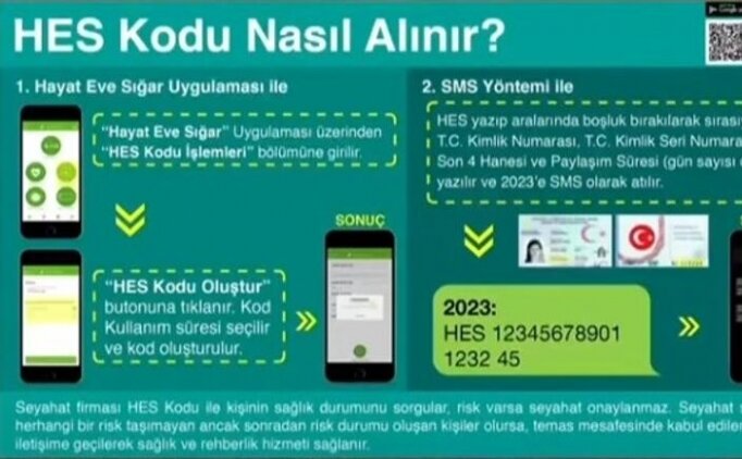HES (Hayat Eve Sığar) Kodu, Kontrollü Sosyal Hayat kapsamında, ulaşım ya da ziyaret gibi işlemlerinizde kurumlarla ve kişilerle, Covid-19 hastalığı açısından herhangi bir risk taşıyıp taşımadığınızı güvenli şekilde paylaşmanıza yarayan bir koddur. Paylaştığınız HES kodları uygulama üzerinden ya da kurumlara sağlanan servisler aracılığı ile sorgulanabilir.