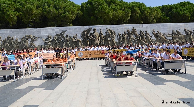 Keşan İlçe Milli Eğitim Müdürlüğü tarafından yaklaşık 700 öğrenci Şehitler Abidesi’nde buluştu. Keşan’dan gelen öğrenciler hem Tarihi Alanı gezdi hem de yeni eğitim–öğretim yılının ilk dersini Şehitler Abidesi’nde işledi. Şehitler Abidesi’nde dev Türk bayrağı taşıyan öğrenciler, daha sonra meydanda oluşturulan sıralardaki yerini alıp derse katılım sağladı. Saygı duruşu ve İstiklal Marşı’nın okunmasının ardından öğrencilere, tarih öğretmenleri Tezcan Kuşkonmaz, Melda Ermez, Hatice Işıklar ve Selçuk Ayaz tarafından ilk dersleri verildi. Öğretmenlerinden, Çanakkale Zaferi’nin Türk tarihi açısından önemini dinleyen öğrenciler, daha sonra Çanakkale Savaşları’nın yaşandığı tarihi alandaki şehitlikleri ziyaret ettiler ve duygu dolu anlar yaşadılar. Keşan Milli Eğitim Müdürü İlhan Saz yaptığı konuşmada; “Aziz şehitlerimiz, siz canla beslediniz bu toprakları. Şimdi sizlerin huzurunda başımız minnetle eğilirken gururla doluyor göğsümüz, söze sığdıramıyoruz, kalplerden taşıyorsunuz. Aziz hatıranızı gururla yad ediyoruz” dedi. Saz, Gelibolu Tarihi Alan Başkanı İsmail Kaşdemir'e öğrenciler için sağladıkları imkanlardan dolayı teşekkür etti.