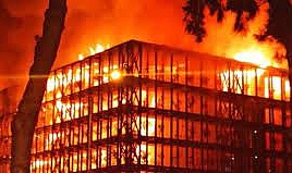 Yangında zaman zaman patlama sesleri duyulurken, bina sakinleri ekiplerce tahliye ediliyor.