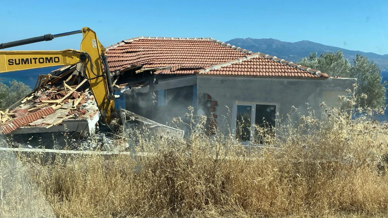 Çanakkale’de tespit edilen kaçak yapılar yıkılıyor.