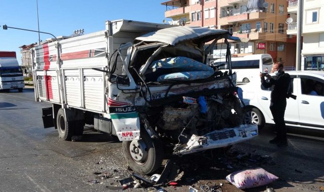 Antalya'nın Manavgat ilçesinde kamyonun kırmızı ışıkta bekleyen tıra çarpması sonucu meydana gelen kazada kamyon sürücüsü hayatını kaybetti.