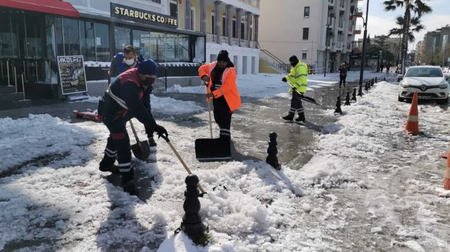 Kar yağışının sonlanmasının ardından kent genelinde gerçekleştirilen çalışmalar doğrultusunda ise, ekipler tarafından yaya ve araç güvenliği için cadde ve kaldırımlarda kar küreme çalışmasına devam edildi. Ekipler buzlanma riskine karşı da yollarda tuzlama çalışmaları gerçekleştirdi.