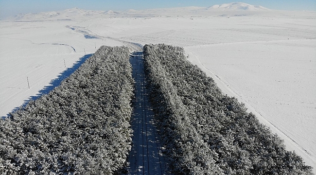 Kars'ta bozkırın ortasındaki 'vaha' beyazlar içerisinde havadan görüntülendi.Kars'ın Selim ilçesinde 51 yıl önce Türkiye Cumhuriyeti Devlet Demiryolları'nda çalışan...