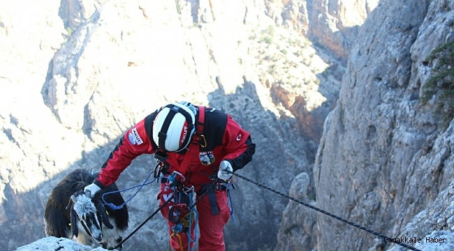 Kayalıklarda mahsur kalan keçi, kurtarıldı