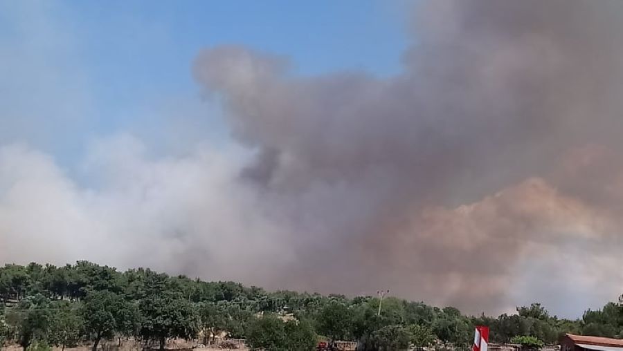 Yangın 40 dakika önce tarım alanında başlayıp ormanlık alana sıçradı.Yükselen dumanlar Çanakkale Merkez'den net bir şekilde gözüküyor.Çanakkale Orman Bölge Müdürü yangının yerleşim yerlerine yakın alanda çıktığını havadan ve karadan müdahalenin yapıldığı ifade etti.
