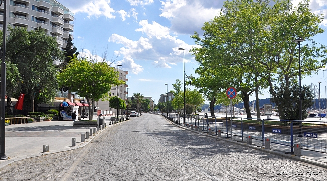 Çanakkale’de Ramazan Bayramı boyunca uygulanan sokağa çıkma kısıtlaması ile birlikte kentin en işlek sokak ve caddeleri boş kaldı.
