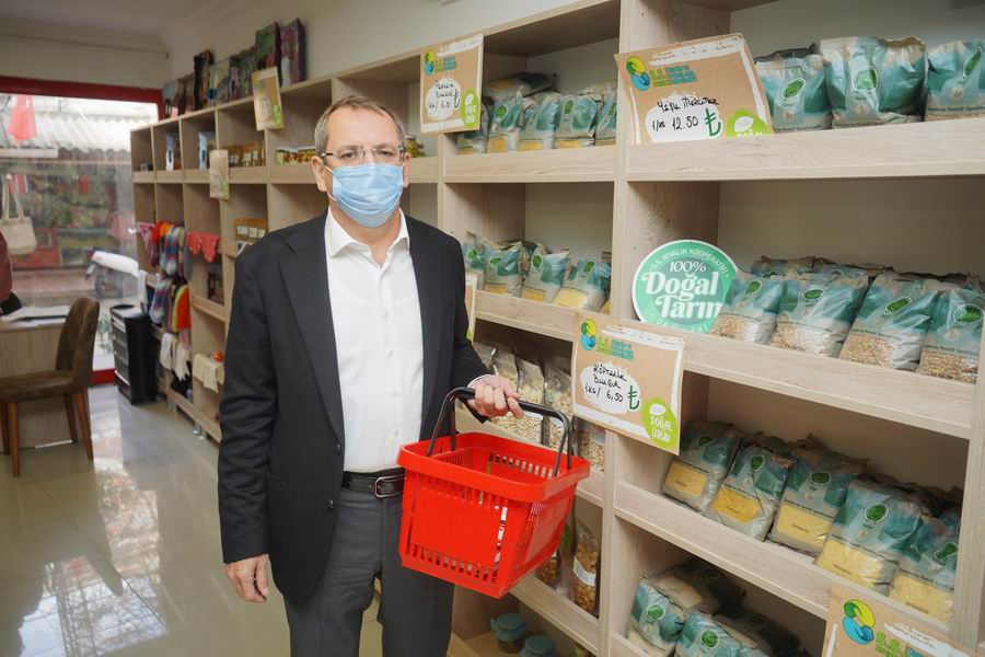 Pandemiden çok önce, Mart 2019 seçimleri öncesi tarım ve tarımda kooperatifleşmeye önem verileceğini, göreve gelir gelmez, yaşama geçirileceğinin sözünü verdiğini hatırlatan Ergin, “Nitekim seçimlerden sonra ilk yaptığımız işlerden biri mahalleevlerini oluşturmak ve Ayvalık Üretim ve Pazarlama Kooperatifini kurmak oldu. Kooperatif demek, dayanışma demektir. Biz bu dayanışmayı halka yayıp öncüsü ve destekçisi olduk. Genel kurulumuzu da tamamladık, yola koyulduk. Satış merkezinin raflarında kardeş kooperatiflerin ürünleri de yer alıyor. Zeytin’den zeytinyağına, peynir’den, reçele, kuru bakliyattan, erişte ve tarhanaya, sabundan, bitki çaylarına kadar pek çok organik ürünün satışı yapılıyor. Hemşehrilerim gönül rahatlığı ile alış veriş yapabilirler” diye konuştu.