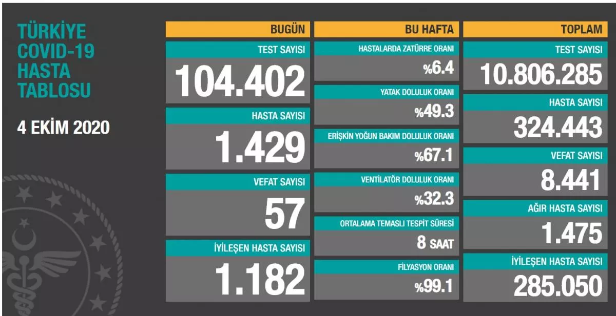 Türkiye'de son 24 saatte 115 bin 328 covid-19 testi yapıldı, 1671 kişiye hastalık tanısı konuldu, 57 kişi hayatını kaybetti.