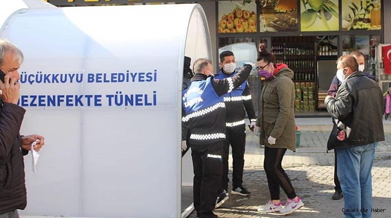 Küçükkuyu pazarına dezenfekte tüneli kuruldu