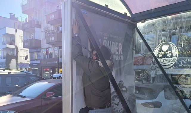 Kültür ve Sosyal İşler Müdürlüğü’ne bağlı personel tarafından hazırlanan 10 Kasım temalı afişler, duraklarda yer alan reklam panolarında yerini alarak, ilçenin dört bir yanında Atatürk'ün hatırasını yaşatacak bir anma atmosferi oluşturdu.