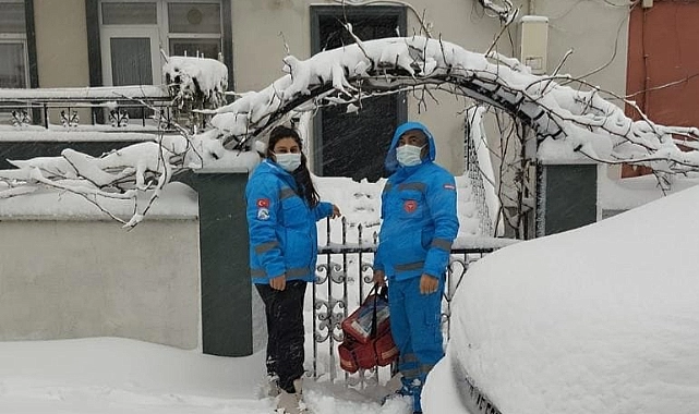 Lapseki Devlet Hastanesi evde sağlık hizmetleri ekibi, kar ve kışın zorlu şartlarına aldırmadan, yatağa bağımlı veya yürüme engeli bulunan hastaların takip ve tedavilerini aksatmamak adına büyük bir özveriyle çalışmaya devam ediyor.