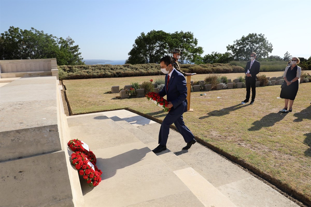 Çanakkale Avustralya Konsolosu Lucas Rabson’un anma kasidesini okumasının ardından Vali İlhami Aktaş, Avustralya Ankara Büyükelçisi Marc Innes-Brown, Gelibolu 18'inci Mekanize Piyade Tugay Komutanı Tuğgeneral Yüksel Erdin ve Avustralya Askeri Ateşesi Albay Richard Campbell Anıta çelenk bıraktılar.