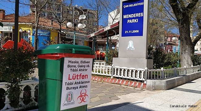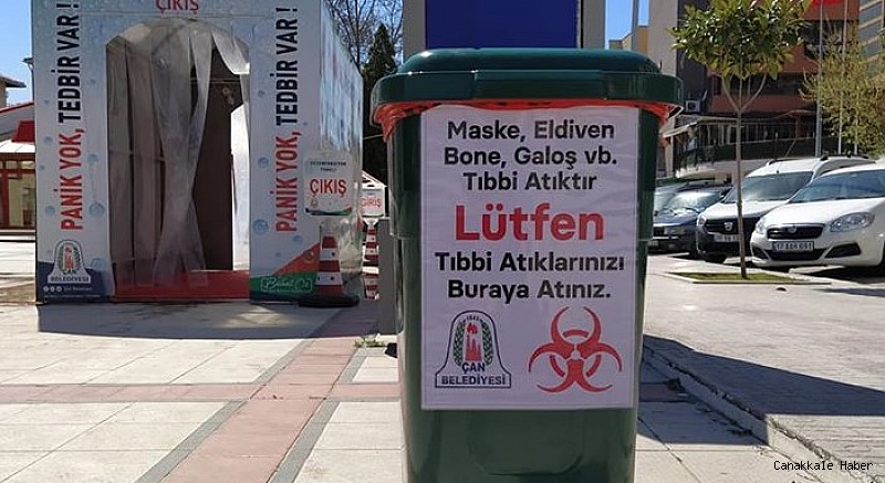 Koronavirüs ile mücadele de kullanılan maske ve eldivenlerin sokaklara atılması hem çevre temizliği hem de çevre sağlığı olarak büyük risk oluşturuyor. Çan Belediyesi ilçede maske ve eldivenlerin atılması için atık konteynırları yerleştirdi. Çan Belediye Başkanı Bülent Öz vatandaşların kullandığı maske ve eldiven atıklarını konteynırlara atmalarını istedi. Başkan Öz yaptığı açıklamada; “Ayrı olarak biriktirdiğiniz maske, eldiven atıklarınızı yırtılmaya dayanıklı çöp torbalarında toplamalı, ağzı sıkıca kapatılan bu torbalar ikinci bir torbaya konularak 72 saat süreyle balkonda bekletilmelidir. Bu sürenin sonunda belediyemizce koymuş olduğumuz maske ve eldiven atık konteynırlarına atabilir ve belediyemize teslim edebilirsiniz.” dedi.