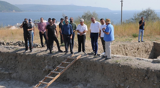 Kazı bölgesinde gerçekleştirilen incelemenin ardından Doç. Dr. Göksel Sazcı, Çanakkale Vali Yardımcısı ve Eceabat Kaymakamı Turan Yılmaz, Çanakkale Savaşları Gelibolu Tarihi Alan Başkanı İsmail Kaşdemir, Eceabat Belediye Başkan Yardımcısı Recep Tutucu'ya geçmiş yıllarda kazı çalışmalarında bulunan 4 bin 200 yıllık çanak ile küçük desti, fincan ve mozaik eserlerin tarihçeleri hakkında bilgi verdi.