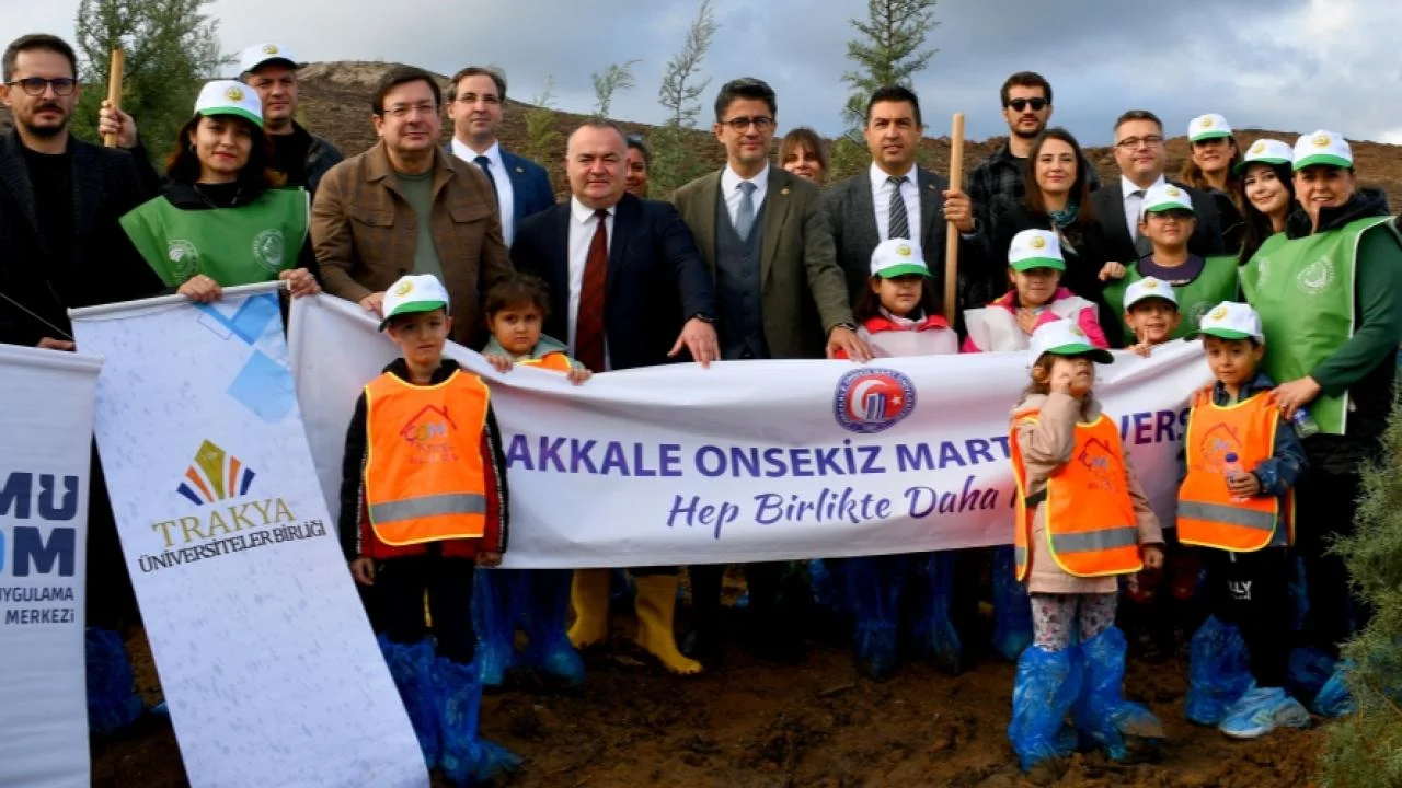 Konuşmaların ardından protokol üyeleri, ÇOMÜ mensupları, öğrenciler ve vatandaşlar, merkeze bağlı Çınarlı Köyü yakınlarında meydana gelen ve 570 hektarlık orman alanının zarar gördüğü bölgede fidan dikimi gerçekleştirdi.